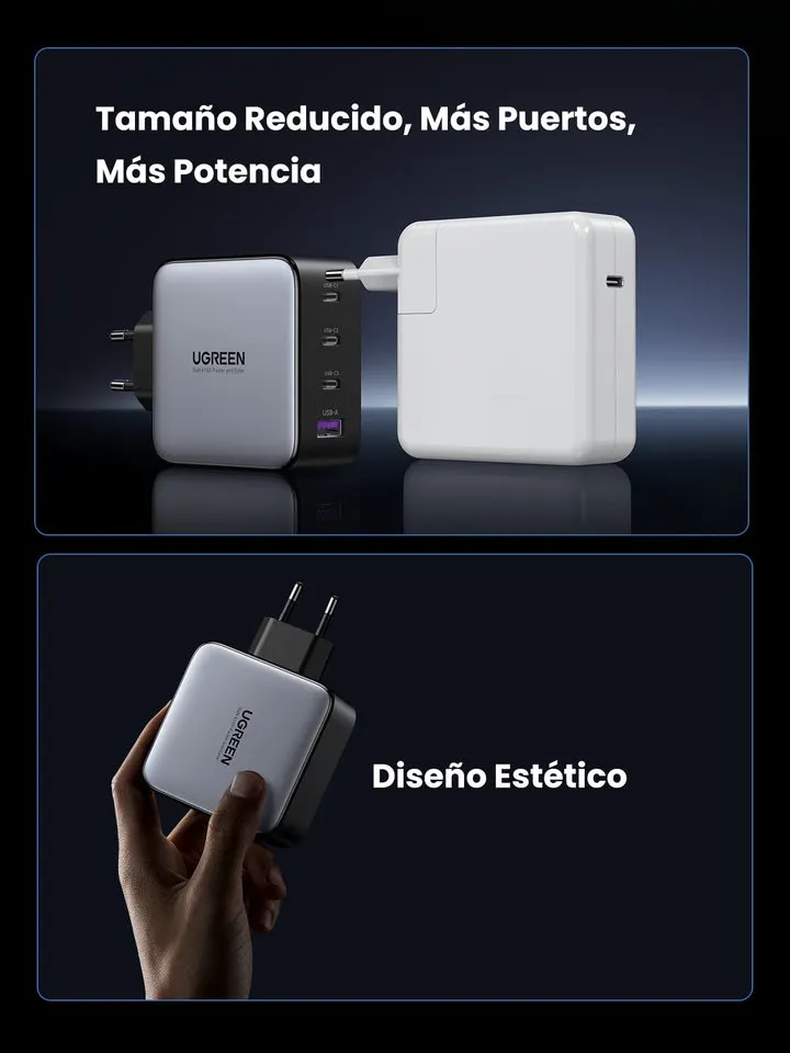 Cargador compacto GaN de 100 W compatible laptops y móviles